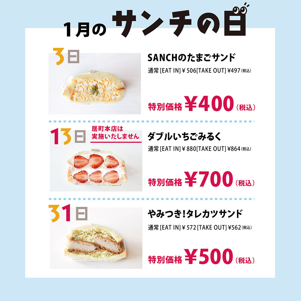 いつもSANCHをご利用いただき、誠にありがとうございます。1月のサンチの日のスケジュールをお知らせいたします。